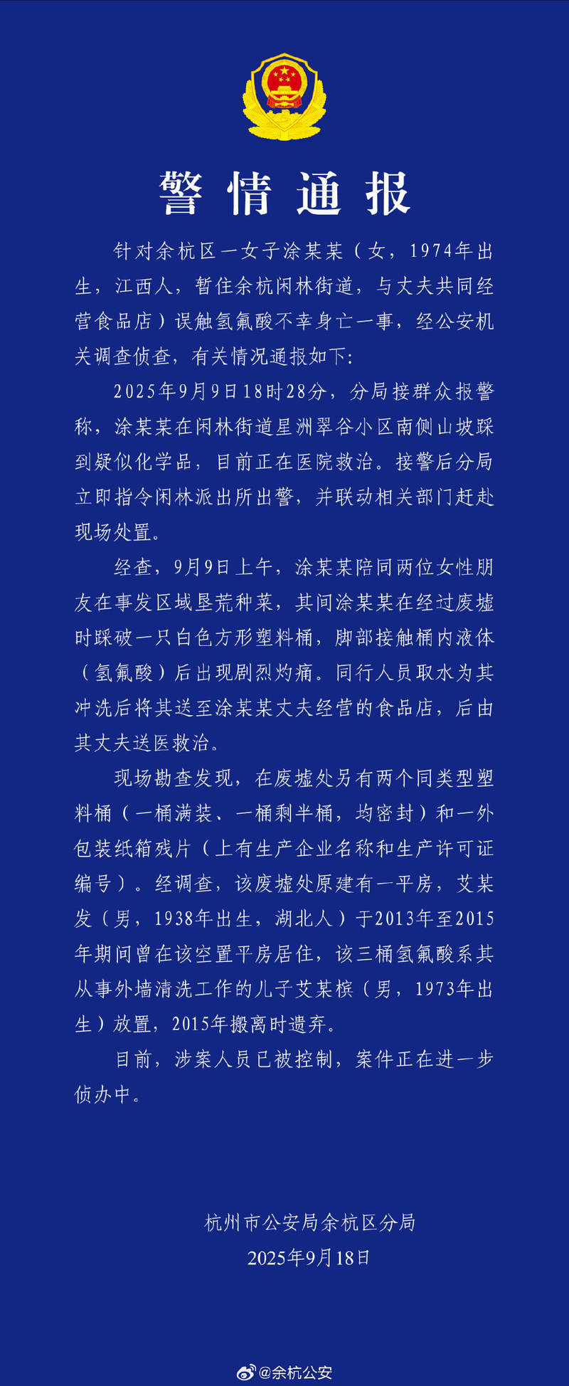 十年前随机丢弃的一个氢氟酸盐大炮被一名妇女意外干预,她的腿燃烧不好,最后死亡。 9月9日发生的事故继续引起人们的关注。根据杭州警察在Z江省发出的通知,事件现场被放弃了,造成事故的人是含有氟化物酸液体的方形塑料桶。在调查过程中,警察发现了两个相同类型的塑料桶,一个完整的桶和一半的左桶被密封。调查后,发现在这个废弃地区建造了一座平房。三桶氢氟酸是由一位前居民Imovin的儿子放置的,并于2015年移居时被遗弃。据了解,Autoubin致力于清洁外墙。目前,当事方正在管理,案件是Bgarlic更大的研究。北京新闻记者有李尔尼德(NED)是一位危险的化学家,出现在相关列表中。那么,在人们使用和存储此类化学物质时应满足哪些安全要求?它如何像危险化学物质一样,例如在使用后仍然存在的水分触发的酸?嫌疑人穆宾承担什么责任?北京新闻记者就此咨询了几位律师。杭州公共安全办公室的Yuhan地区分公司警察报告。照片/Yuhang的公务员微电器遗弃者怀疑疏忽丢弃危险物质,或者必须被视为犯罪和民事。上海jiu-jitsu律师事务所的律师Fanatico de Wei表示:“平房是封闭的空间,但普通民众并不期望这座房子在十年内从封闭的地方被遗弃,但这并不意味着被废弃的人没有失败。”根据公共信息,氢氟酸是无色的L带有浓烈而刺激性气味的iQuid,可用于记录和脉冲玻璃,以及清洁表面,例如石材,砖块和大理石。他在接受媒体采访时说,第三次武汉医院说,一个以前专门从事医院治疗的外墙的人意外触及了患者,同时准备在左手结合的清洁剂中含有不正确的氢氟酸。外部AI Moubin分析了可能因疏水酸而造成的损害,因此怀疑他们的作用是不公平地消除危险物质的。根据《刑法》第115条,如果一个人疏忽消除有毒,放射性和感染性的病原体和其他物质,或者在严重伤害,死亡或其他危险形式中对公共和私有财产造成严重损害,则将在三年内被判处常规刑期判刑,不在三年之内。如果是坐姿较低,将被判处最高三年的固定监狱或拘留期。此外,律师事务所Shaanxi Hangda的主要合伙人Zhao Liangshan认为,犯罪嫌疑人的行动可能构成造成危险物质事故并污染环境的犯罪。根据犯罪情况,该判刑可能是三年或以上七年。如果确认犯罪嫌疑人在没有获得成绩的情况下购买氢氟酸,则可能还可能指控犯罪关系adop买卖危险物质。同时,从民事责任的角度来看,相关当事方的行动必须与谅解备忘录的死亡建立直接的因果关系,并承担民事不满的全部责任。死者的邻居可以要求索取医疗费用,葬礼费用,死亡补偿等。如果一个人拥有个人拥有的危险化学物质,则必须交付其余产品o公共安全。根据“关于危险化学品安全控制的法规”,危险化学品必须存储在特殊的仓库,特殊地点或特殊储藏室中,并由专门的人处理。那么,个人个人存储此类化学物质是非法的吗?北京Wino律师事务所的合伙人Yang Guangwen说,即使他们没有造成任何真正的损害,人们也可能负责拥有或储存危险化学品。 Yang Guangwen指出,犯罪者必须承担的特殊责任是彻底考虑存储的危险材料的性质,数量和有害后果。 “例如,一些购买和存储高毒农药用于杀虫剂的农民代表了公共安全的风险。根据对公共安全行政制裁的法律,如果损害相对轻微,任何生产,出售,商店,商店,商店,使用或丢弃危险的人Bstances,例如10种爆炸物,有毒,放射性,腐蚀性性的传染病,违反了强奸违反民族违法行为的行为。天。考虑因素通常是违反法律和法规的行为,不仅是为个人保留和储存危险化学物质的行为,还会造成真正的损害。个人财产和存储行为不在法规之外,破坏了整个监督过程。 “ Kou Hanbing补充说,相关法律法规对购买,危险化学产品的运输和存储的各个方面都有明确的要求,并且人们通常没有法律存储所需的条件和资格。”作为荧光酸,使用后,必须将其交付给专业或合格的人员进行无害治疗。 “北京Zhipu的律师事务所说,“关于危险化学品安全管理的法规”的Artíule99清楚地说明了公共IC处于公共安全状态。相关部门必须根据法律进行无害处理,环境保护当局将对Eldebera确定的专家单位进行编辑,是否组织或将其交付给危险和危险化学品的制造商对其进行治疗。北京新闻Xu ming peg chong修订的记者修订了