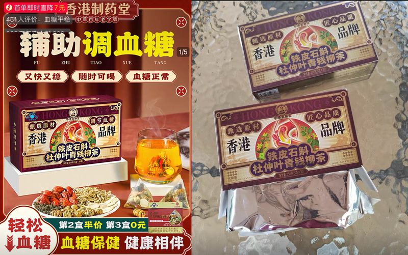 “ Unnsugar Tea”由单个Ryonic Qian Li,一部分苦瓜或10种成分制成,可以使“高”产量平静,降低,稳定并减少“高”负载。请记住,医学专业人员对这种茶水的“神奇效果”迷信,从而减少糖,无视饮食和生活方式的护理,甚至停止药物。法律专家还强调,禁止普通食品促进自己的影响,并且不相信商人所说的“减少减少效果”。一些替代茶和茶声称它们可以减少购物平台上的糖,并且有多种产品可以减少糖。糖茶的减少已成为许多“糖尿病朋友”的第一个选择,以帮助减少日常生活中的糖。北京新闻记者注意到,他们在市场上出售的一些“茶酱”是健康食品,例如Sidu Brand Shucha。我在特殊食物上找到的医疗服务国家监管国家管理局的信息平台是降低血糖水平并降低血脂。有些产品未被证明为健康食品的“蓝帽”,而是茶或替代茶,但非常大胆以促进减少糖的影响,而减少糖的效果比健康食品和药物的糖效果更好。黄金甜茶的产品属性在树突状乌尔摩叶的旗舰店中出售,乌尔摩叶叶绿色和邓小平是替代茶。从消费者照片来看,产品包装没有“蓝色帽子”徽标,但是商人的促销照片中有外部包装中的“蓝色帽子”徽标。此外,要使用糖尿病相关症状的照片,促进产品的照片说:“它们没有吸收,修复,调整平衡或取决于反弹。”同时,他表明“临床试验获得了精确的数据,并且在使用后30天内,血gluco glucose levels gradually decreased, and previous blood glucose levels decreased from the initial 15 mmol/high to 5 mmol/liter”, but the data box shown does not show the source. Dendrobium Officinala Deng Xiansen’s flagship store in Lis Ulmoids Leaf qingqianliu has the “blue hat” logo, and the real packaging of outside products (right) does not have the “blue hat” logo. Promotional photo, green sauce tea, corn鱿鱼,桑树叶叶,欧洲蛋糕的叶子是“低血糖”,然后是“低血糖”,随后的主要成分,产品包含两个PAQUETES。这种耐糖茶的成分保护胰腺,肝脏,肾脏和其他器官在独立或协同作用下,修复损害对于胰腺胰岛,提高对胰岛素的敏感性,改善胰岛素抵抗,并抑制抑制抑制抑制血液,血液,血液,血液,血液,血液,血液玻璃杯的血液,血液的抑制,血液,血液,血液中的玻璃杯的玻璃杯的抑制,血液中的玻璃杯的玻璃杯,血液中的玻璃杯的玻璃杯,血液中的玻璃杯的玻璃杯,是血液中的玻璃杯的玻璃杯,是血液的玻璃杯,是血液中的玻璃杯,是血液中的玻璃杯,是血液中的玻璃杯,血液,血液的抑制作用,血液,抑制血液,血液,血液,血液,inhiblood bidos,抑制血液。血管中的甘油三酸酯进一步防止血管过早衰老,并避免高血糖并发症。在询问记者有关血糖禁食水平的信息之后,客户服务推荐了三盒这盒,称血糖水平可以在饮酒后饮食前稳定4-5 mmol/升。除替代茶外,商人还使用干茶叶和蔬菜以促进减少茶糖的作用。例如,在Flags Pharmacy的旗舰店中出售的大型特殊级别的叶子茶没有声称可以通过产品购买链接有效的内容,但搜索页面显示“降低了高压,稳定糖,同一天饮用并在秋天击中。”从产品资格来看,所有人的消费者旨在降低血压,降低血脂和降低血糖水平。一些公司并没有避免避免使用过度拥挤的消费者使用同性恋,而是发表了许多案例,以促进替代茶的“减少糖”作用。肾素的Yangshengang Juqing Tang的茶购物链接使用照片和文本已直接发布了多个案例。例如,“张叔叔喜欢喝酒和吃肉。随着年龄的增长,他的血糖水平增加,每天都感到不舒服。我买了这茶,持续了三种ENT课程。他的血糖水平仍然下降。我还在喝酒。”他说:“它可以很容易地从高糖(糖)中减少。”肾上腺素健康大厅宣布的一个案例。不良商店的照片de den de deng xiansen和在网上商店的屏幕截图ofocomsian liuu茶的在线存储店没有发表案例,但在糖服务效果上饮用了糖的糖,在糖服务中,糖的糖就会饮用糖,饮用了糖,饮用了糖,饮用了糖,” Promotion of Absolute Effectiveness of Merchants and the Promise of Invalid Returns Often Further PromuTes Consumer Purchasing Decions.” The Sugar Drop is too fast, The Roots Are Broken, and The Night is reduced and not (relativley) high TEA, at Merchant Selling Company, promised to reduce the sugar-lowering effect by saying, “If you’re not satisfied, you’ll return it after drinking.” tried in form gRatuita Tanty Corn Squid, Green and Golden Willow Mulberry lShennon Jinkan旗舰店的EAF茶声称“您可以降低红色并稳定它”,“三个不高,红色,Shennon Jinkan Sand-jan NYC”。替代茶具有16个药用剂,主要的“ 3个大Jangao”是绿色和金柳树,桑树叶和玉米鱿鱼,以及“江”代替“ subai”。该产品的盒子里有30个罐头,价格为129元。 “这是对基于科学家的替代茶有效性的明确而绝对的承诺。避免审查宣传,即咨询虚假的宣传,他们咨询了咨询中国传统健康法的虚假宣传,该法律宣传了宣传的虚假宣传,表明对中国诉讼的特定医疗态度的错误宣传宣传的宣传宣传。低血糖引起的低血糖。近年。随着过去的两三年的监督增加,在卧床诊所的患者相对较少。”凯小米说。添加了Cypibens的商人。每年接受治疗,三分之一与中国卫生协会进行的调查有关。西药成分,其中38%的剂量问题高于标准。北京新闻记者注意到,一些公司(例如自然岛上的旗舰店)有三个产品搜索页面:贵族桑叶叶和双瓜茶。接下来,“高”一词消除了词“口”,产品购买界面的标题使用单词为“鸟根双脂质”和“血糖”。但是,产品链接最终启动了“有关搜索产品和页面词